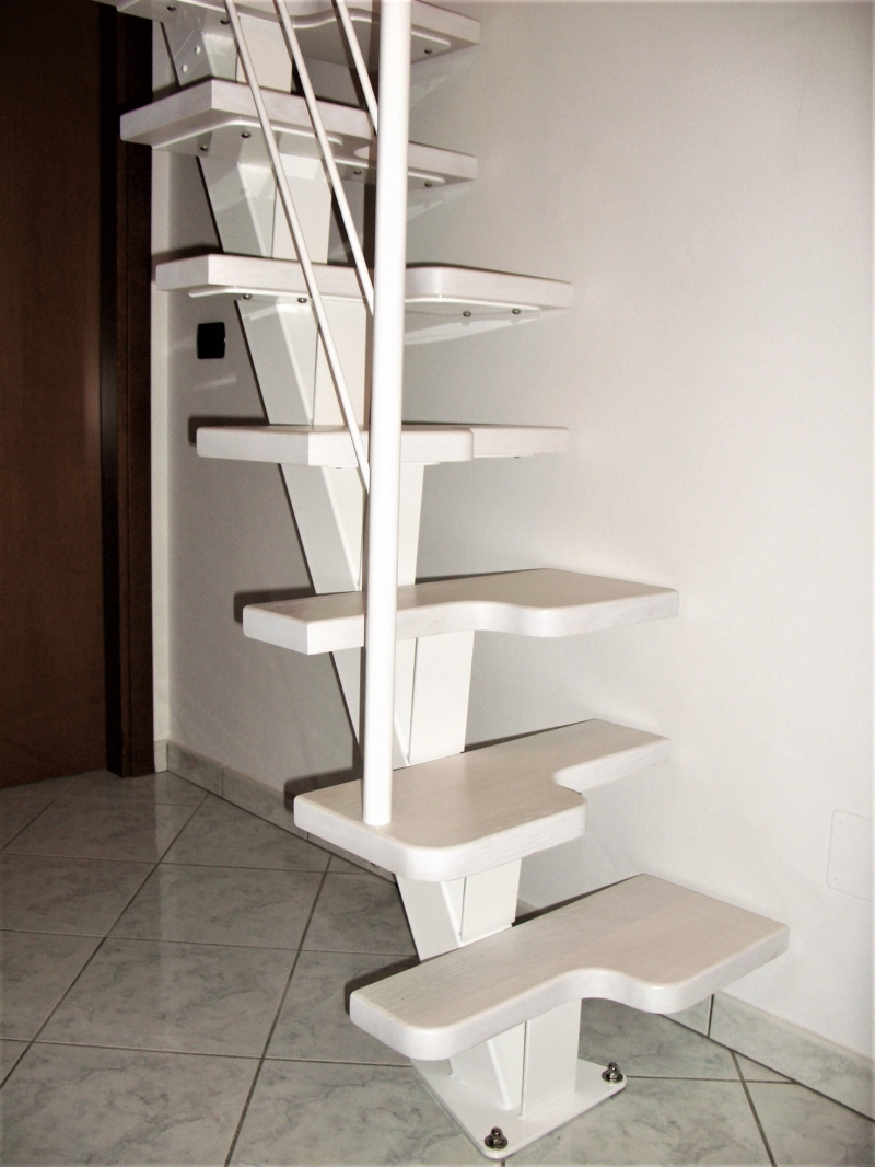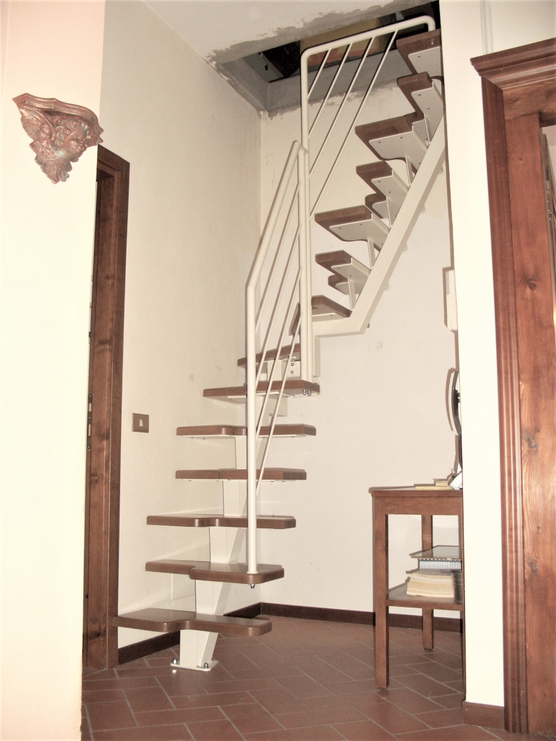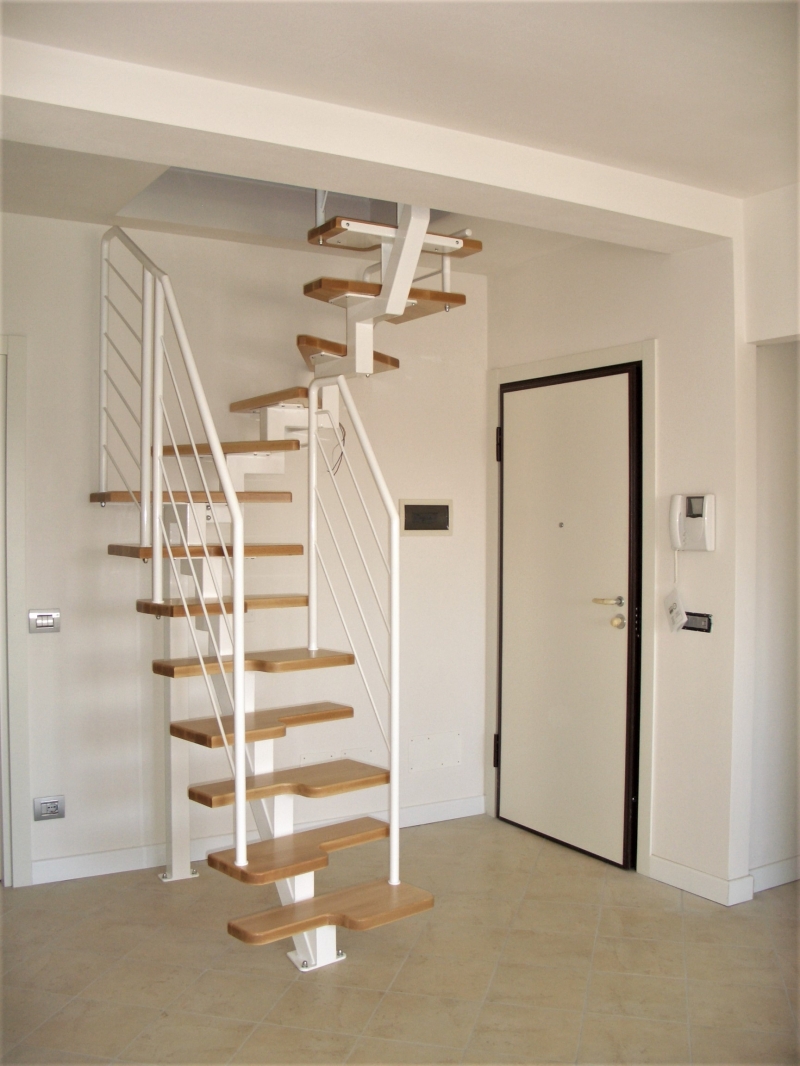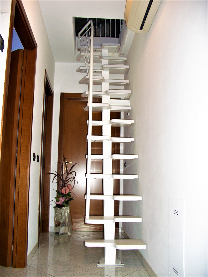 QUESTA TIPOLOGIA DI SCALA , PERMETTE DI POTER SALIRE IN POCHISSIMO SPAZIO .