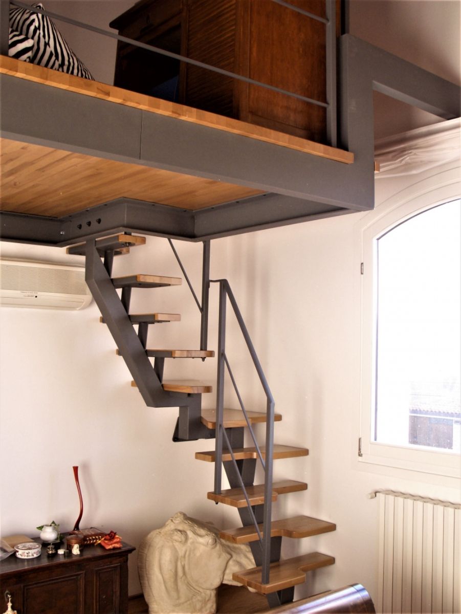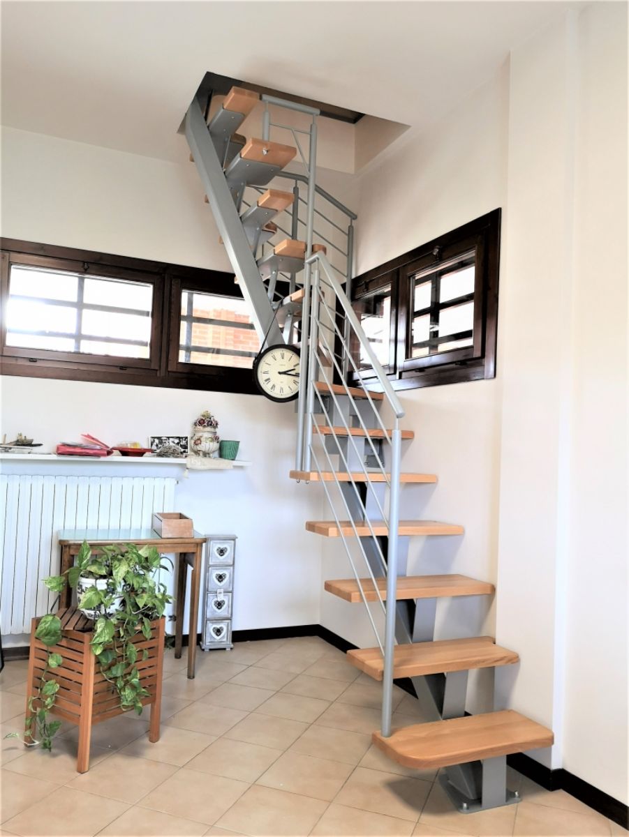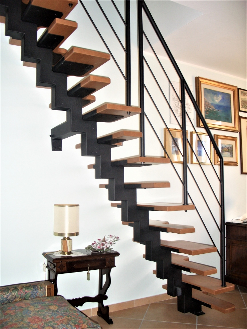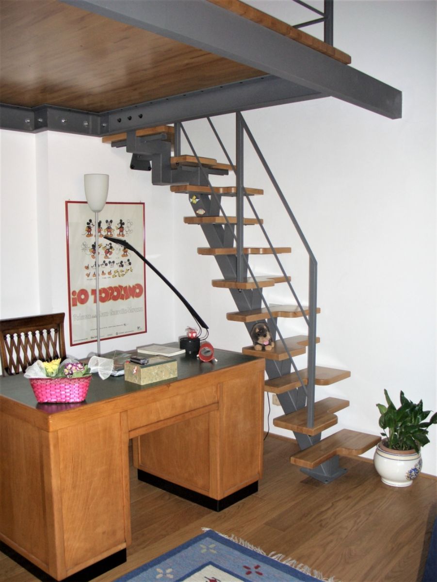 QUESTA TIPOLOGIA DI SCALA , PERMETTE DI POTER SALIRE IN POCHISSIMO SPAZIO .