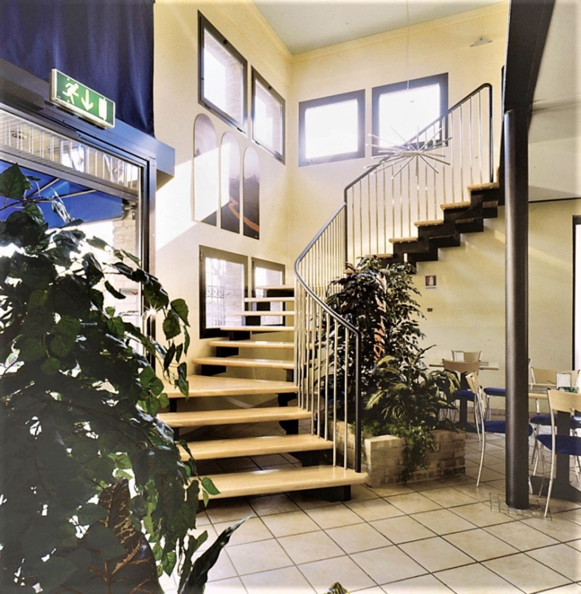 SCALA A GIORNO CON DOPPIA STRUTTURA PORTANTE IN TUBOLARE A GINOCCHIO .