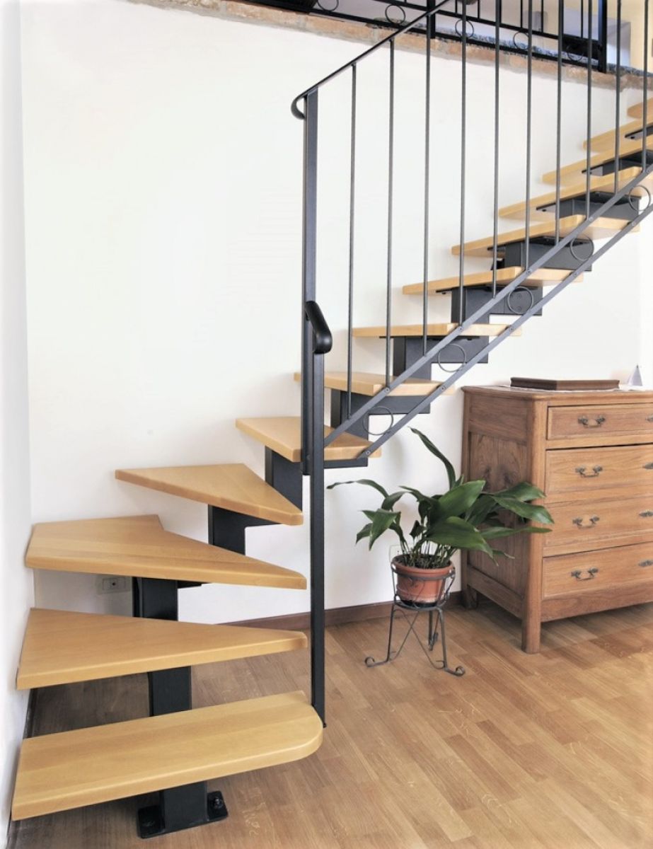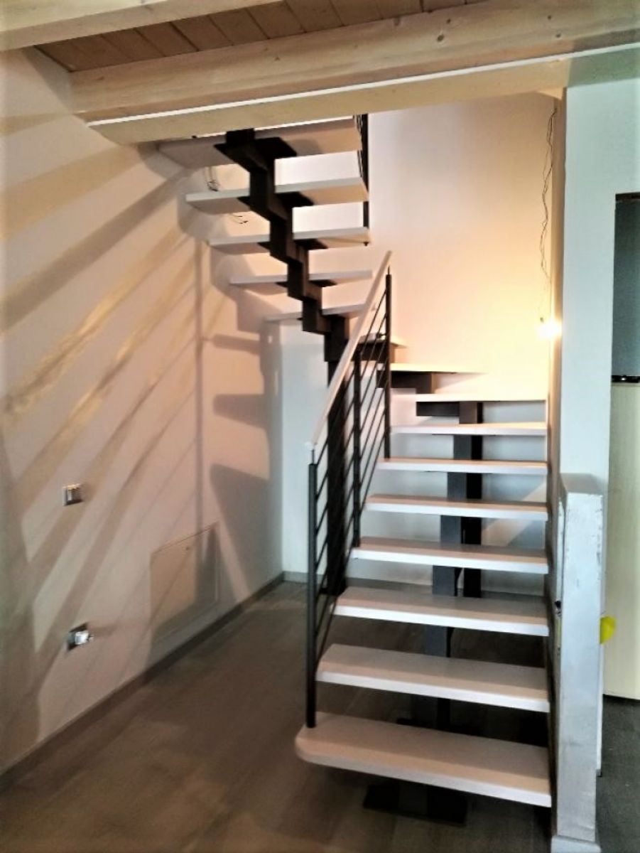 SCALA A GIORNO CON MONOTRAVE CENTRALE IN TUBOLARE DI FERRO A GINOCCHIO .