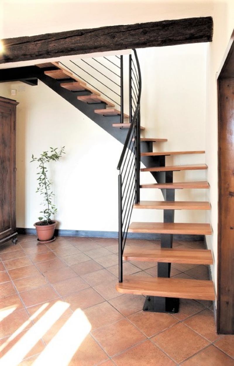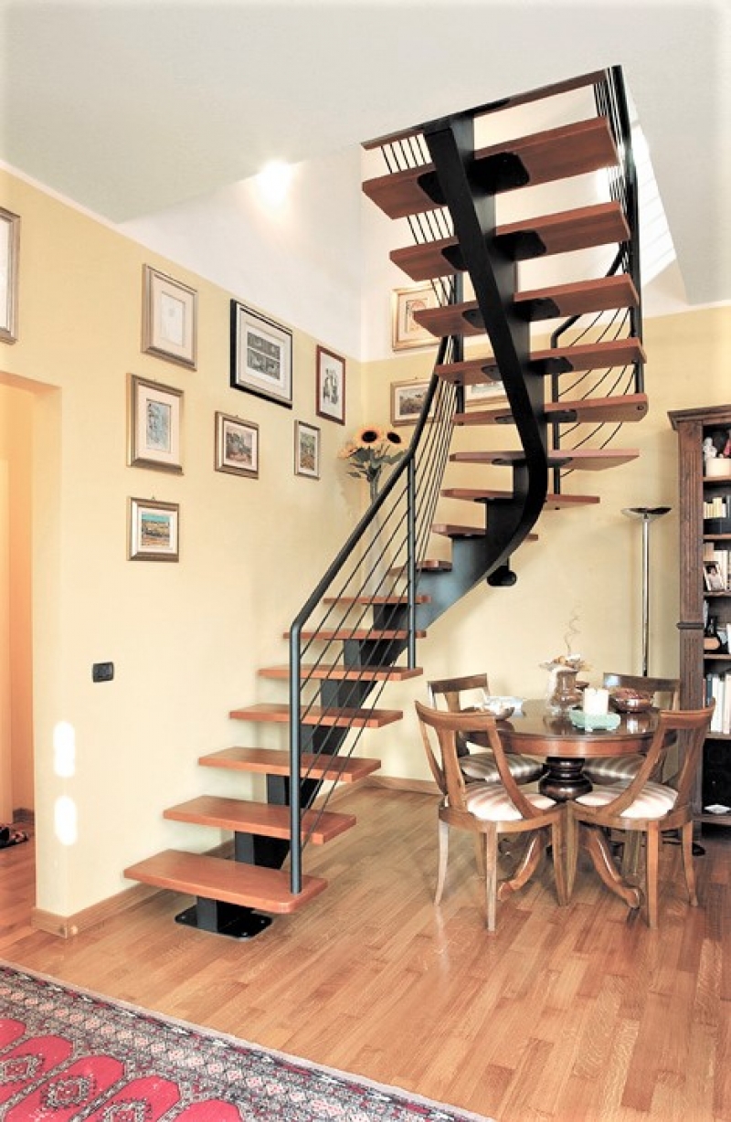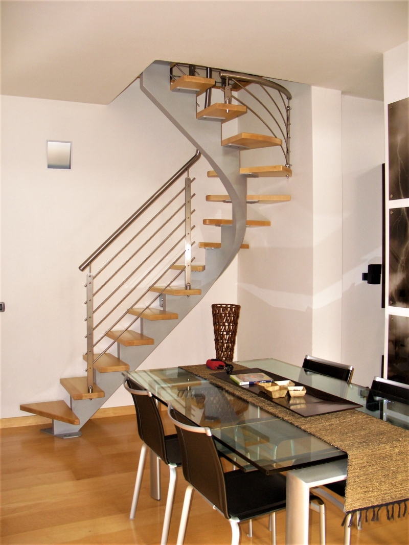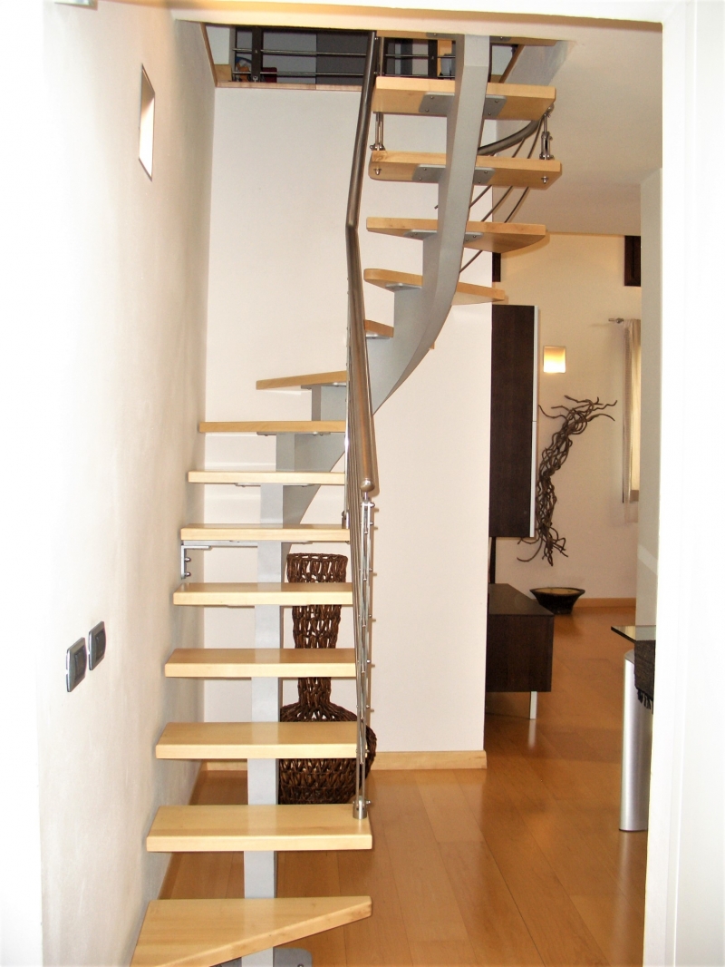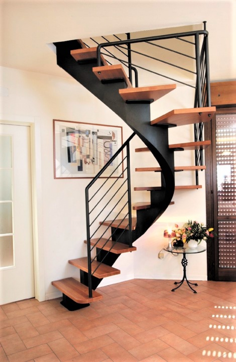 SCALA A GIORNO CON STRUTTURA CENTRALE ELICOIDALE CENTINATA .