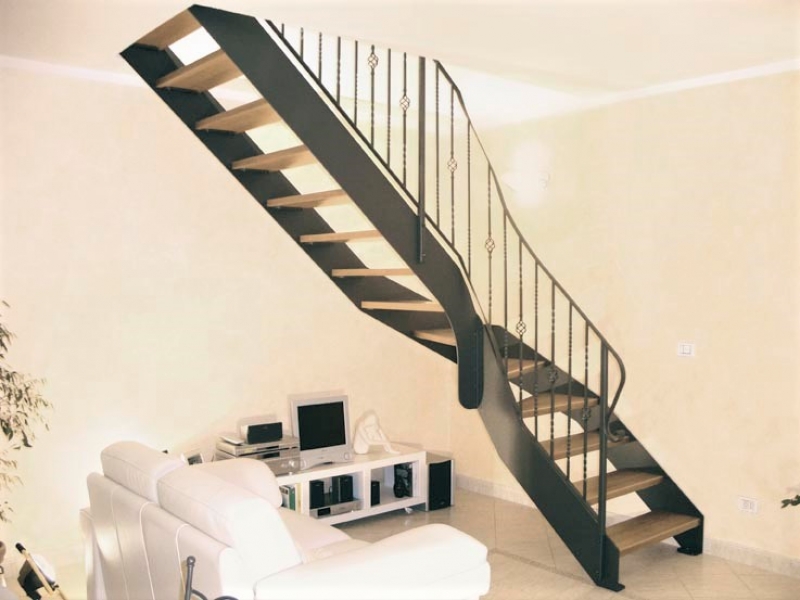 SCALA A GIORNO FORMATA DALLA DOPPIA STRUTTURA PORTANTE LATERALE IN FERRO , GRADINI IN LEGNO CON VARIE ESSENZE A DISPOSIZIONE , VARIE TIPOLOGIE DI RINGHIERE E DI COLORI , SIA PER LE PARTI IN LEGNO CHE IN FERRO .