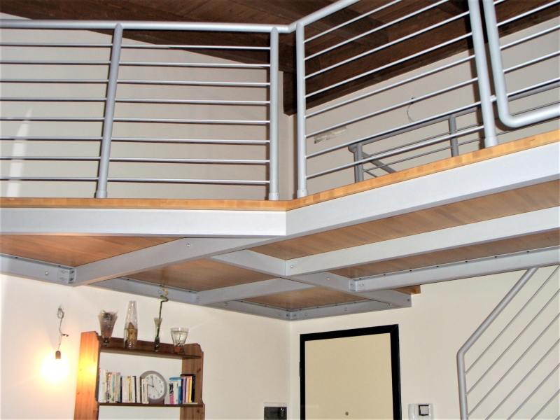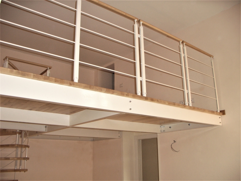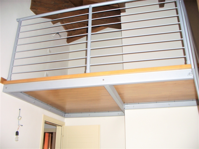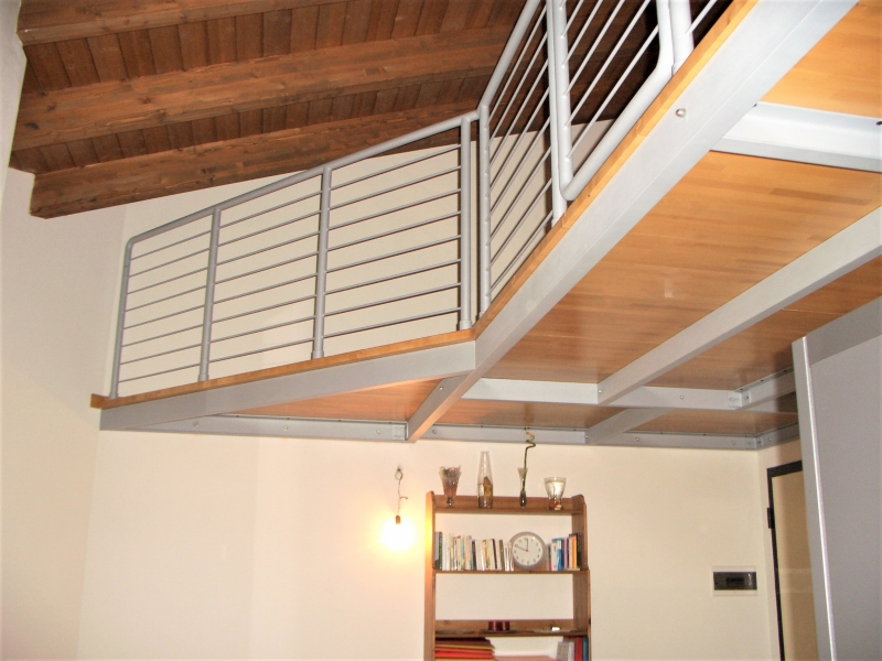 I soppalchi illustrati di seguito, da noi costruiti, sono solo alcuni dei modelli che si possono realizzare. Possono essere installati senza l'ausilio di opere murarie (escluso eventuale imbiancatura delle pareti), ancorando le strutture portanti alle pareti, tramite bulloneria fissata con resina chimica, o eventuali piedi di appoggio a pavimento. Possono essere realizzati completamente in legno, in ferro, misto ferro e legno, acciaio inox o vetro. La pavimentazione da noi consigliata, (per i soppalchi standard) è sempre con pannelli in legno lamellare (non le doghe classiche), in modo che non ci siano molte aggiunte e allo stesso tempo il soppalco è molto più solido, in quanto i pannelli (una volta ancorati), formano un corpo unico con il resto della struttura. Valutiamo eventuali progetti presentati da parte vostra o di un vostro tecnico di fiducia.